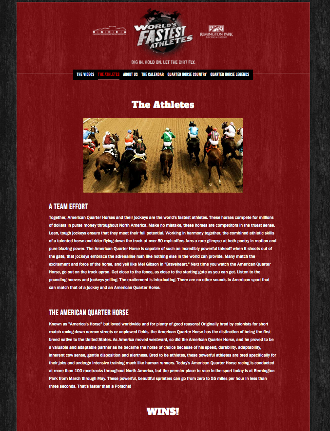 What We Did: For over a decade, we have executed various techniques which have gained OQHRA recognition from features of our custom campaigns on TV and radio to digital media platforms. Our practices and creative have helped them jump ahead of their competition winning them a national award from the American Quarter Horse Association for our out-of-the box thinking through the launch of worldsfastestathletes.com.